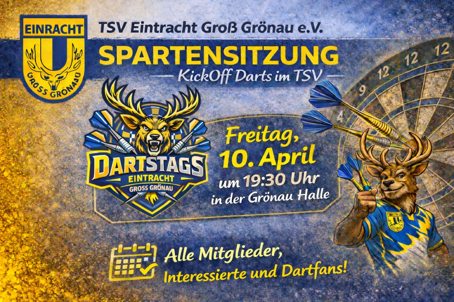 Schau doch gerne beim KickOff der neuen Dartsparte des TSV Eintracht Groß Grönau am 10.04.2026 um 19:30 vorbei!